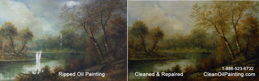 Oil painting cleaned, hole fixed.